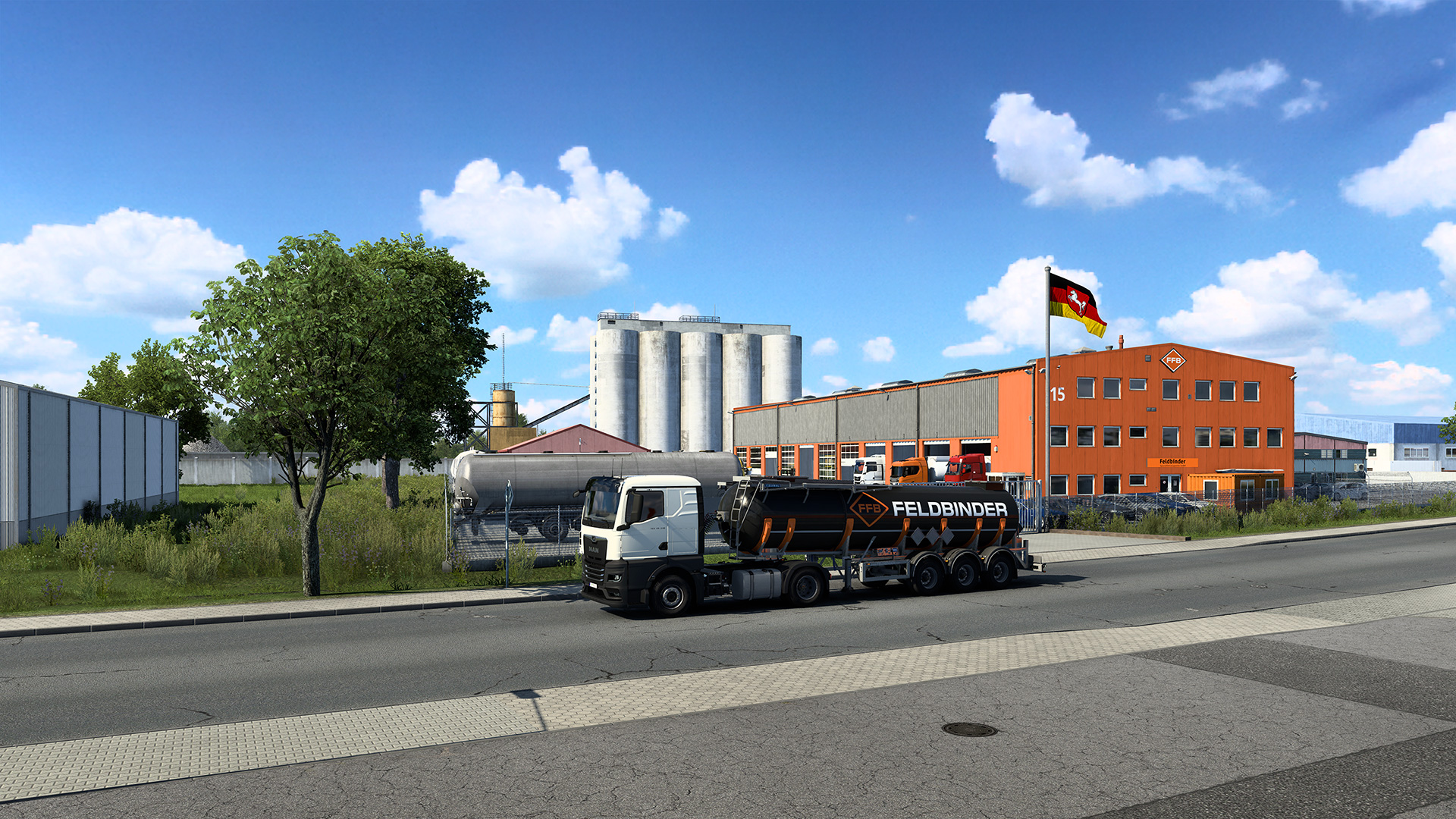 Tato aktualizace zahrnuje také velmi očekávanou továrnu Feldbinder a Winsen, kde budou moci řidiči převzít smlouvy ze 2 nových dep, jednoho pro odevzdání tolik potřebného nákladu, dílů a dalších a další oblasti pro vyzvednutí zcela nových návěsů čerstvě z výrobní linky pro dodávky podnikům a zákazníkům po celé Evropě.